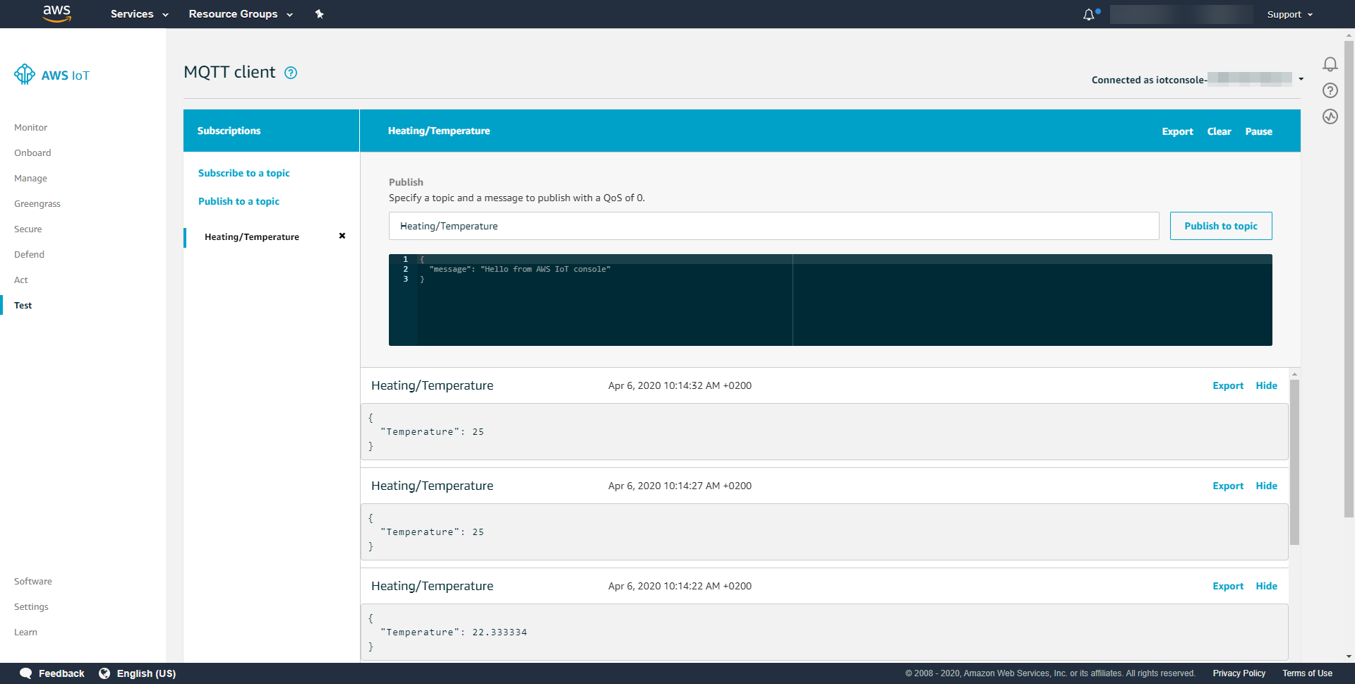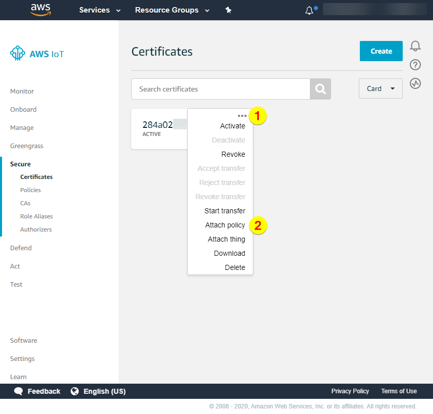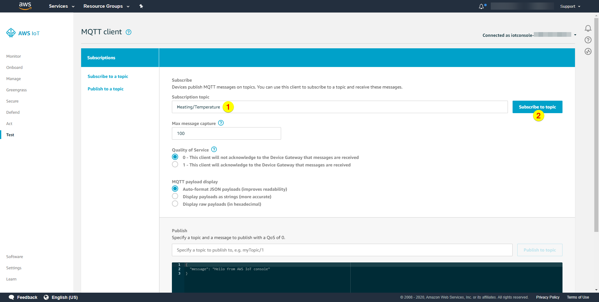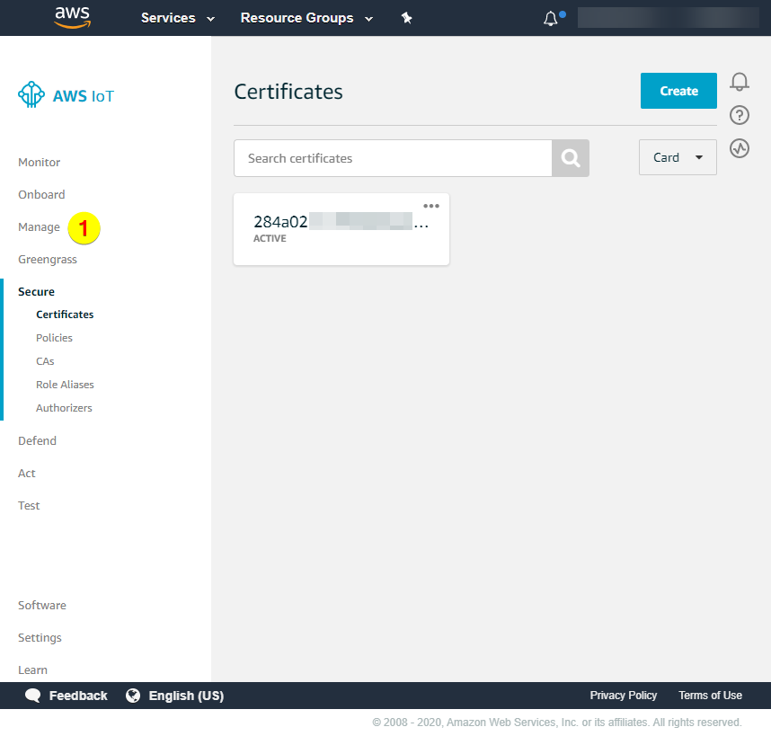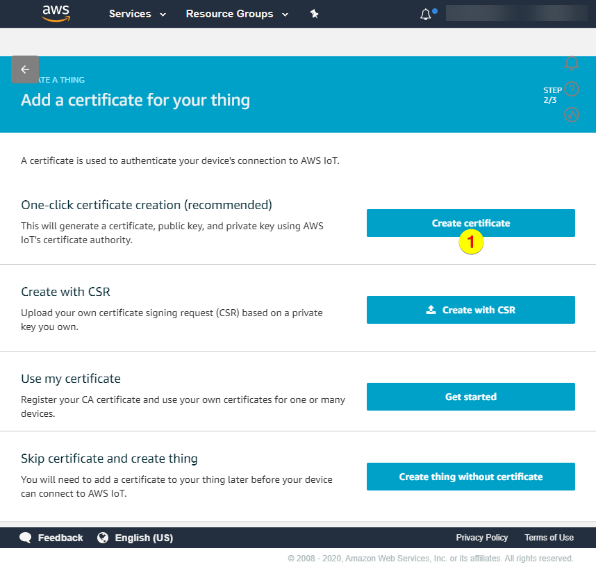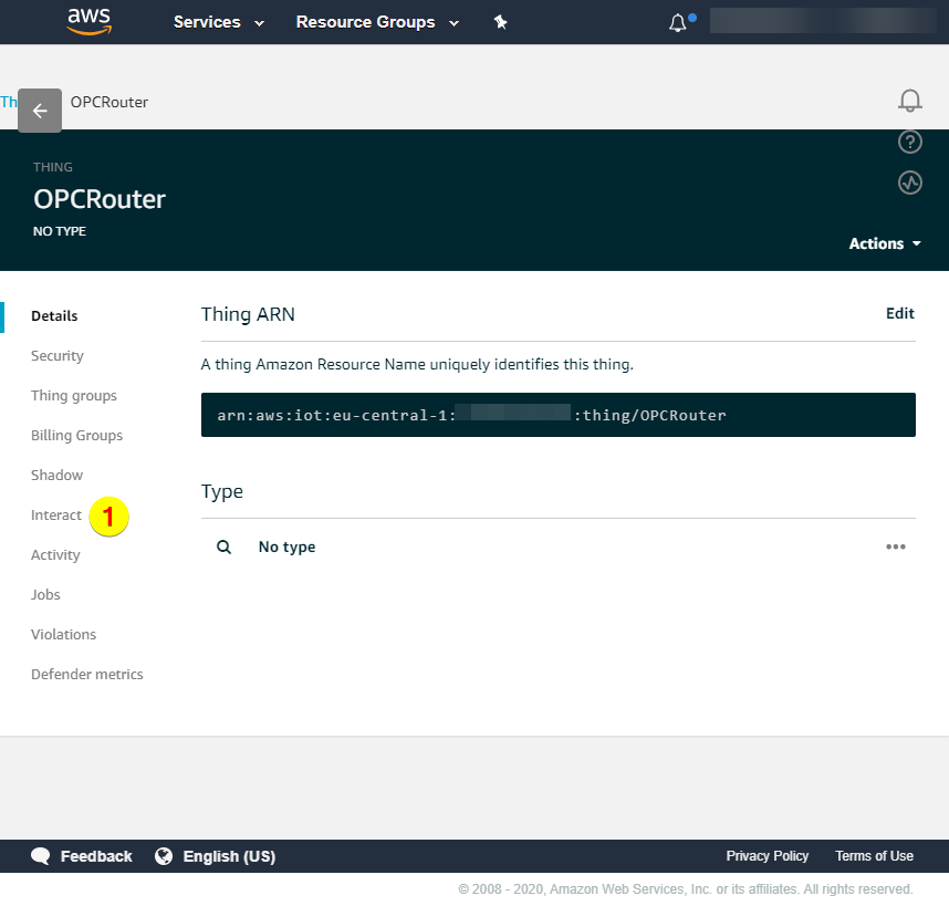 1. 登录 AWS 门户:https ://eu-central-1.console.aws.amazon.com/iot/home?region=eu-central-1#/thinghub