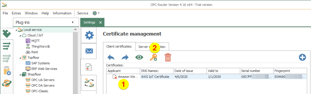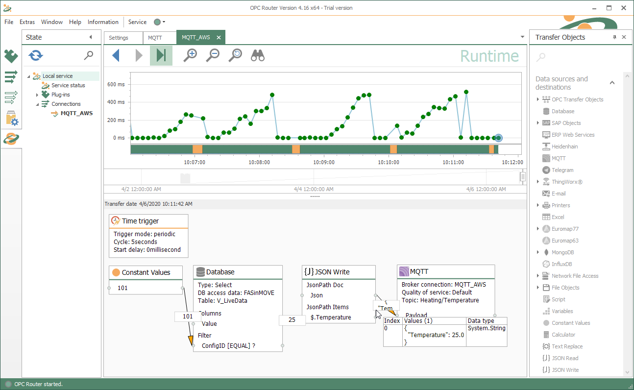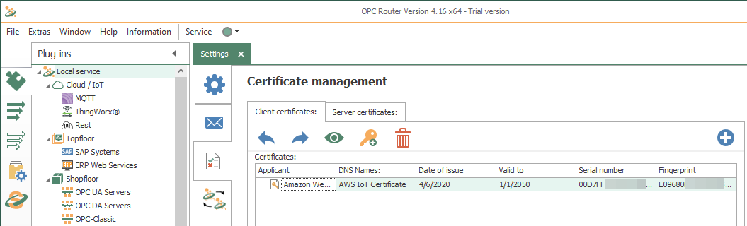 Amazon AWS 云是市场上领先的云环境之一。与所有平台一样,AWS 提供了一个物联网环境 ( AWS IoT ),可以在其中创建对象。与物联网中的常见情况一样,对象通过 MQTT 链接到该字段。因此,带有MQTT 客户端插件的 OPC Router 成为 AWS IoT 对象的可能数据供应商。为此,OPC Router通过其 插件从各种来源获取数据, 并将其双向传输到云服务。