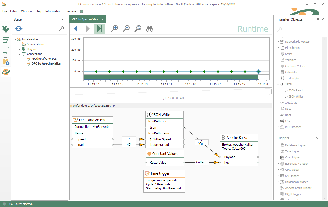 OPC Router为工业系统与 Apache Kafka 提供了强大的链接。其图形化配置和强大的运行时间使其成为工业应用的理想选择。