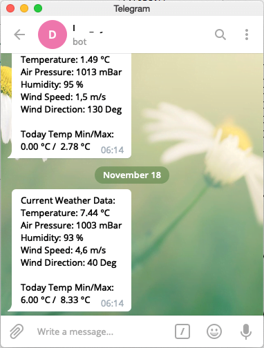 - 天气数据可以使用 Telegram 插件通过电报发送