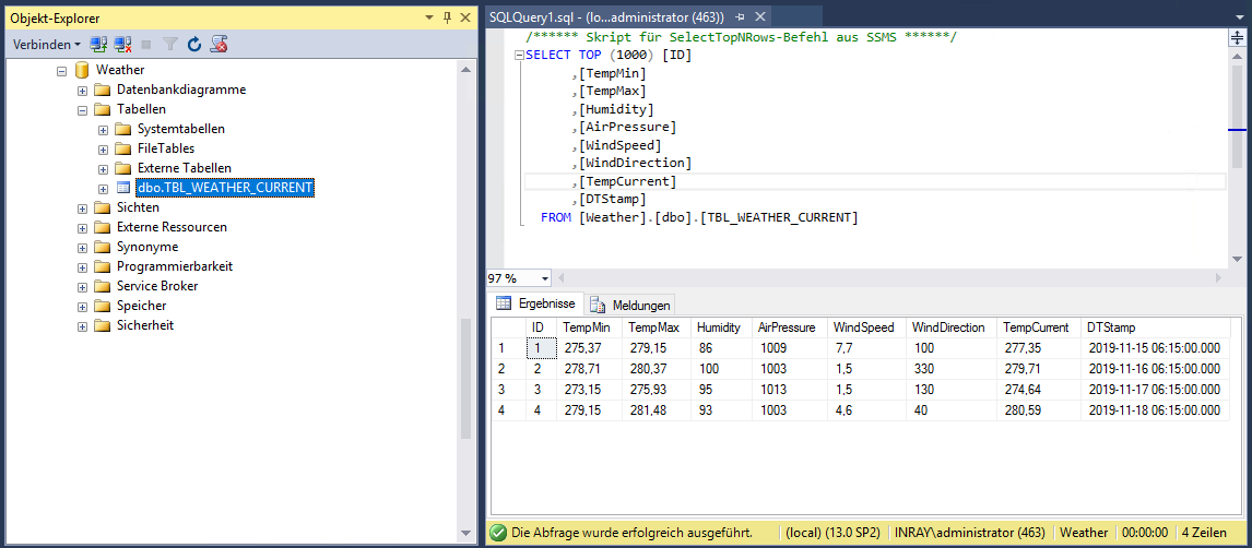 在 SQL 数据库中存储天气数据