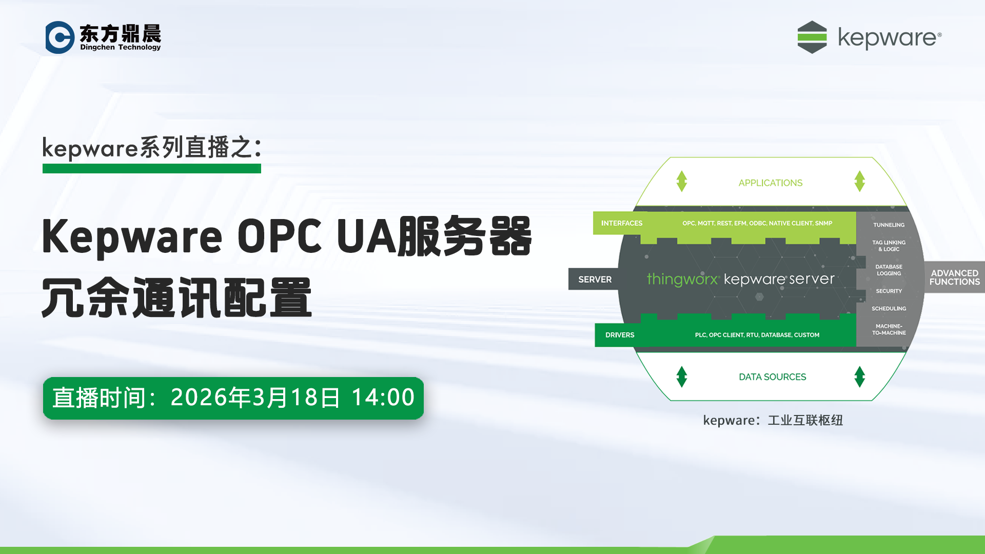 本次直播为系列课程之一 ,将深入讲解 Kepware OPC UA 冗余通讯的完整配置流程,结合实际操作,带您一步步掌握如何通过两台 OPC UA 服务器实现冗余通讯,确保在单点故障时系统仍能无缝切换,稳定运行。
