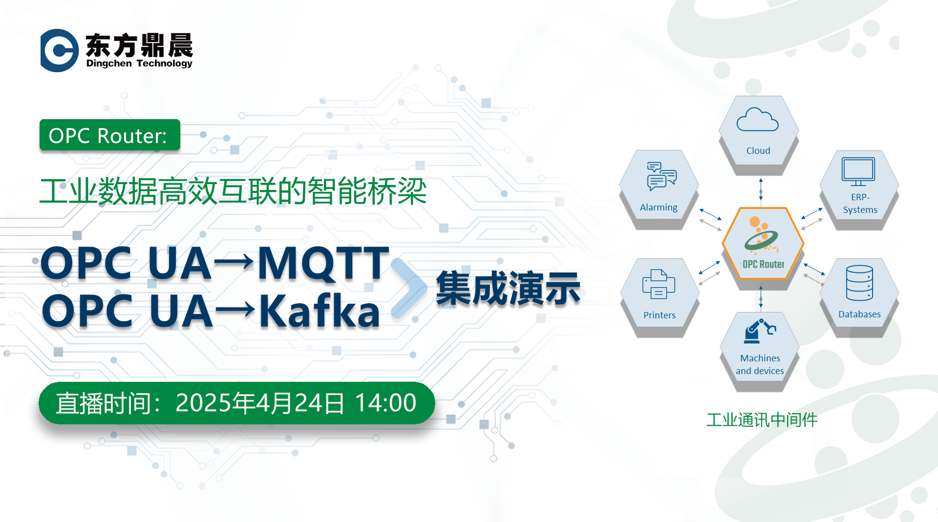 本次直播将聚焦两大核心场景: OPC UA→MQTT:实时采集设备数据并推送至物联网平台,助力远程监控与云端分析 OPC UA→Kafka:高效接入海量工业数据至流处理平台,赋能实时决策