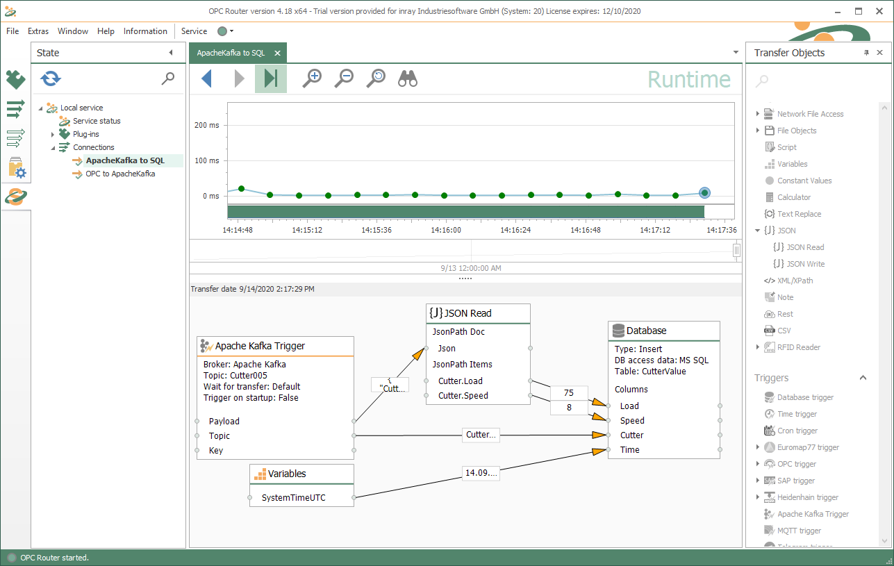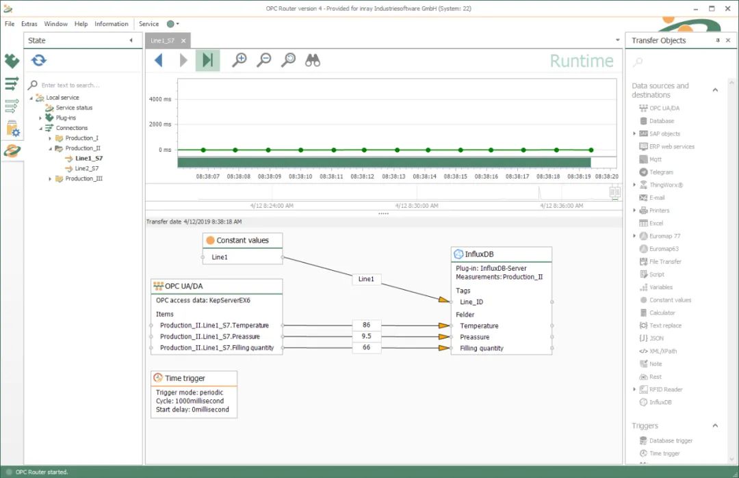 使用Router的influxDB插件,通过拖放的图形配置,就可以简单便捷的将这些工业基础设施系统的数据直接传输到 influxDB数据库,并使其可用于大数据和分析应用程序。