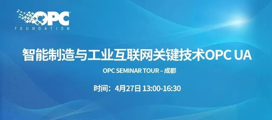 由OPC(中国)基金会主办的“OPC Seminar Tour – 成都智能制造与工业互联网关键技术OPC UA”将于4月27日下午与成都国际工业自动化展同期举办。