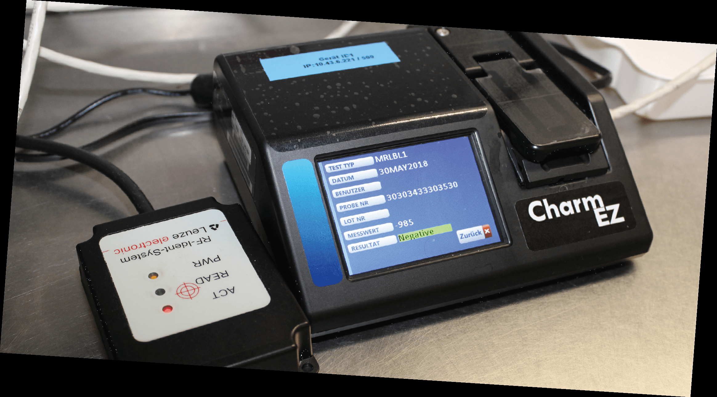 在Altentreptow DMK工厂采用的是Charm EZ系统(Charm Sciences,Inc.),该系统提供可靠的快速测试。通过OPC Router中的Charm EZ插件,将检测数据提供给实验室和管理信息系统。如果牛奶样品的检测结果是合格的,会根据德国乳品厂站使用的HACCP概念,自动清除泵站CCP抑制剂测试。如果奶样不合格,则原奶不能在泵站清除,也不能在那里卸货,而是必须在其他地方处理,严格遵守质量规章制度。