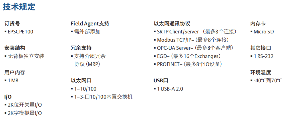 在较小的应用中利用PACSystems的功能和灵活性。RSTi-EPCPU使得被并入在整个编程组件中作为一个独立的应用控制或者在一个使用 RX3i 作为大型过程应用中作为辅助控制成为可能。这将简化操作和维护人员的培训并且使得应用开发和集成的效率更高。