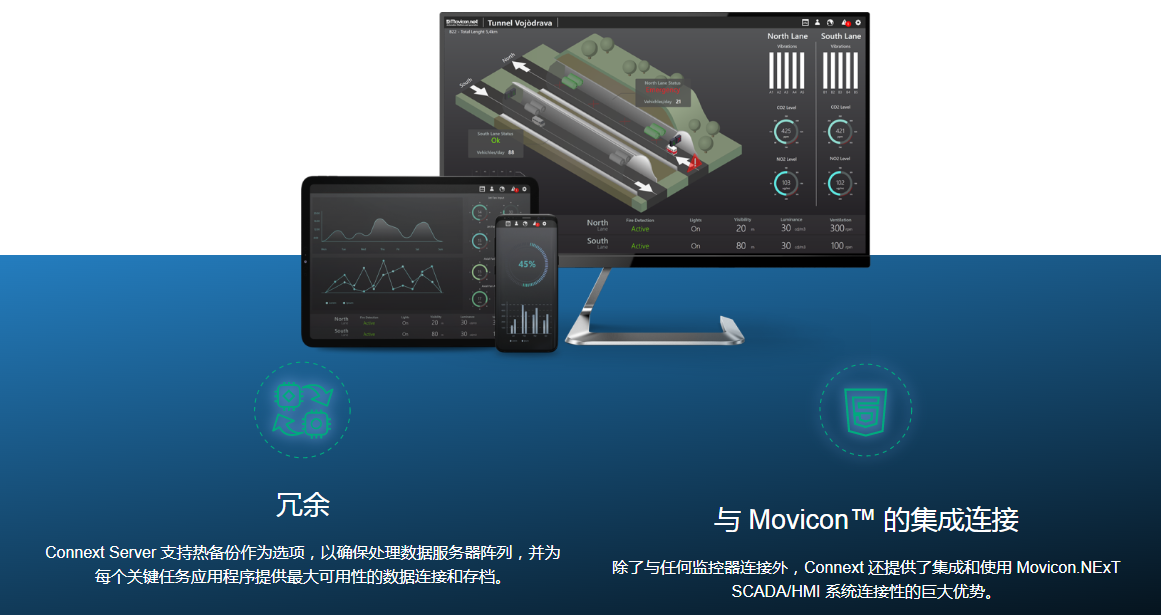 Connext 提供先进的工具,包括网关、Historian、警报和条件、IIoT 和冗余功能。