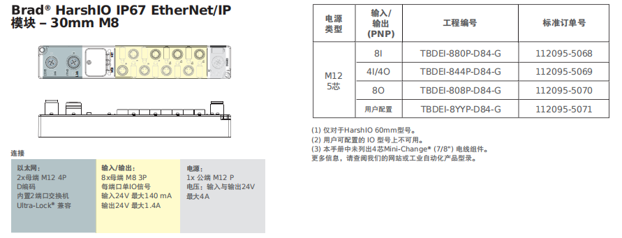 Brad? EtherNet/IP HarshIO ??椋窳踊肪诚碌?IP67 级别数字式 IO ??樯杓朴糜诰哂蠩therNet/IP通讯功能的直接机器安装应用。
