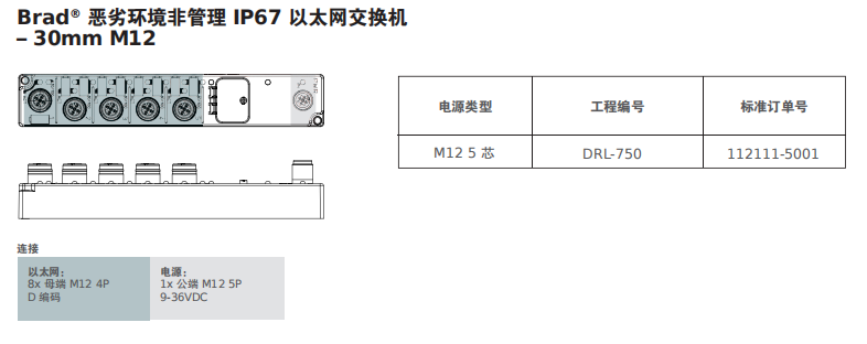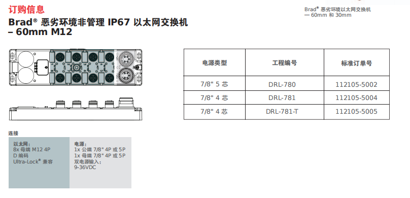 Brad? 恶劣环境以太网交换机,恶劣环境下的 IP67 级别高速以太网交换机设计用于直接机器安装应用。