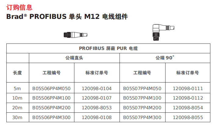 即插即用的 PROFIBUS 基础设施可用于实现与基于 B编码M12 标准接头的 IP67 设备的互连。设计采用 PUR 护套材料以实现更好的耐化学性与耐油性,接触阻力更低,并且可提供 360°的屏蔽接头设计以降低 RFI/EMI。