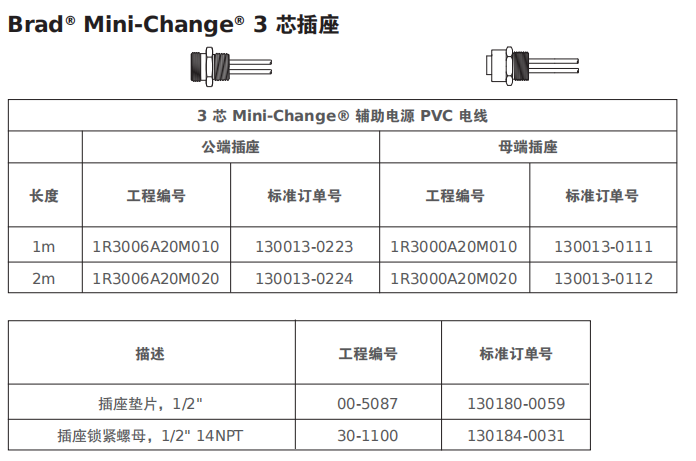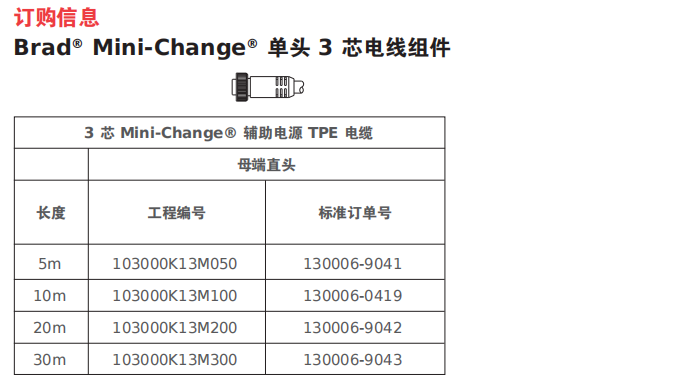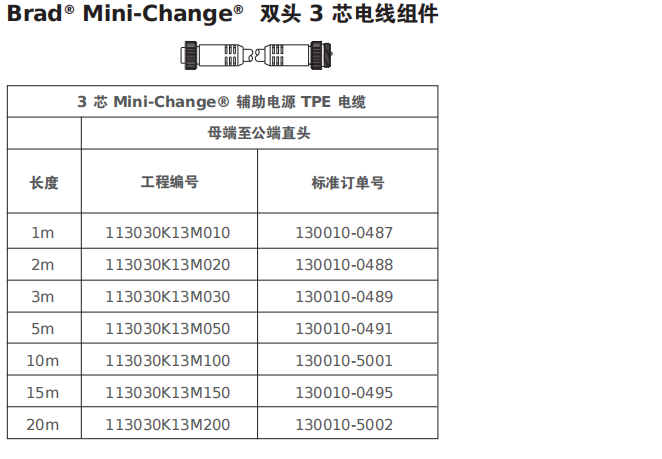 Brad? Mini-Change? 7/8" 辅助电源基础设施组件,即插即用的 3 芯配电基础设施可通过 7/8" 标准接头来实现 IP67 设备的互连,也称为 Mini-Change?。