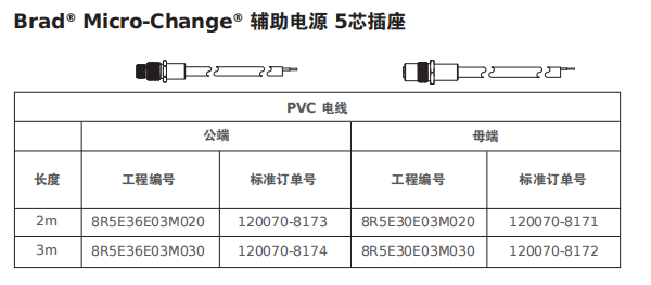 Brad? Micro-Change? M12 辅助电源基础设施组件,即插即用的5芯配电基础设施可将基于 A编码 M12 标准接头的IP67 设备互连。