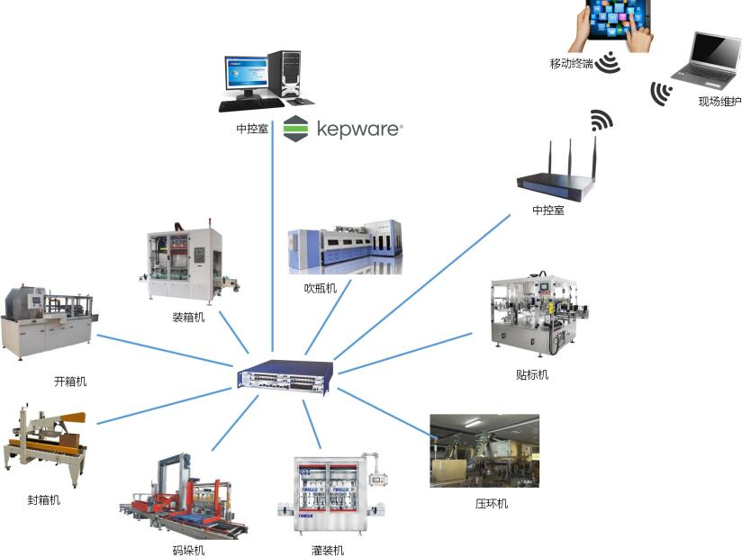 包装生产线多台设备各自独立,并且控制器品牌各异,没有集中统一的监控系统。